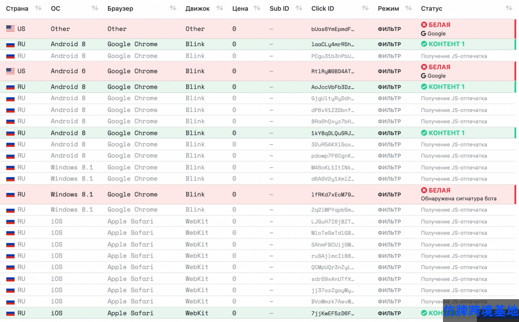 您仍然可以使用 UTM 标签过滤,但这些参数足以过滤 Google 机器人。其余的被指定为白页。流实现方案可能会有所不同:它可能包括也可能不包括拦截流等。关键是考虑到前面讨论过的参数来分配它们。 Keitaro 的截图可以说明这一点: