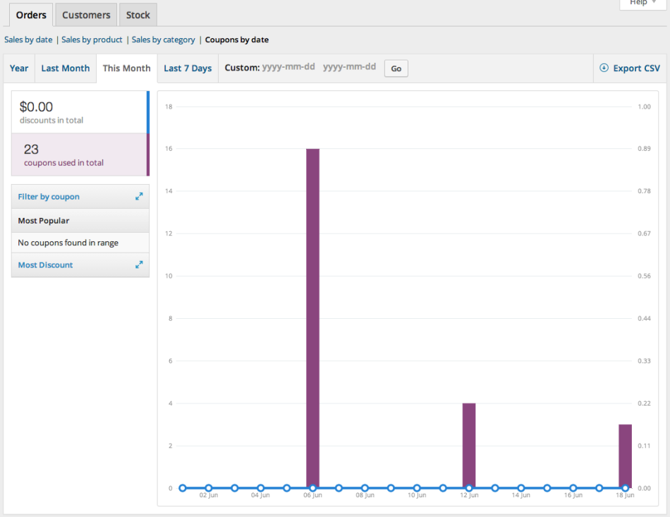 按日期优惠券类似于前面部分。显示了总折扣、使用的优惠券数量、按优惠券筛选的能力、查看最受欢迎的优惠券以及折扣最多的优惠券。