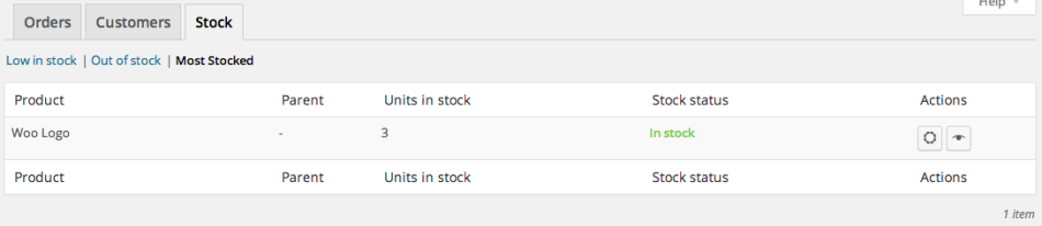 与仪表盘小工具类似,库存报表列出了你的低库存和缺货的产品以及剩余库存的实际数量。