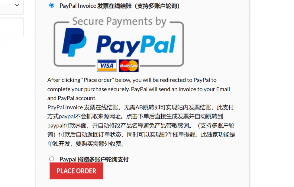 此支付网关非离线网关,客户点击下单后,会在系统后台立即生成Paypal账单,并重定向到Paypal付款界面