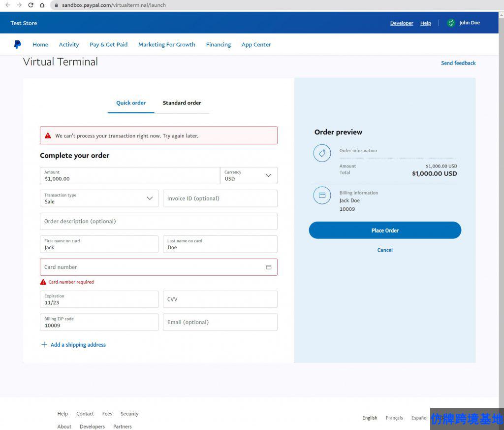 PayPal Virtual Terminal(虚拟终端)