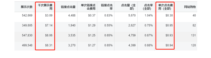 点击率是显示广告疲劳的重要指标。通过点击率和频次这两个指标,摸索出适合自己的点击率和频次数,就可以确定什么时候需要轮换广告素材。